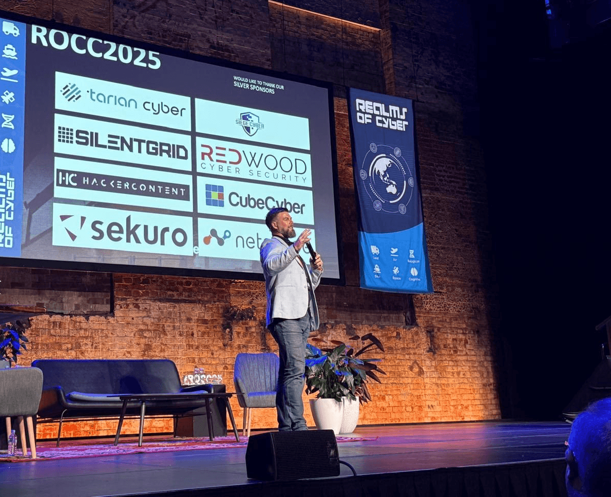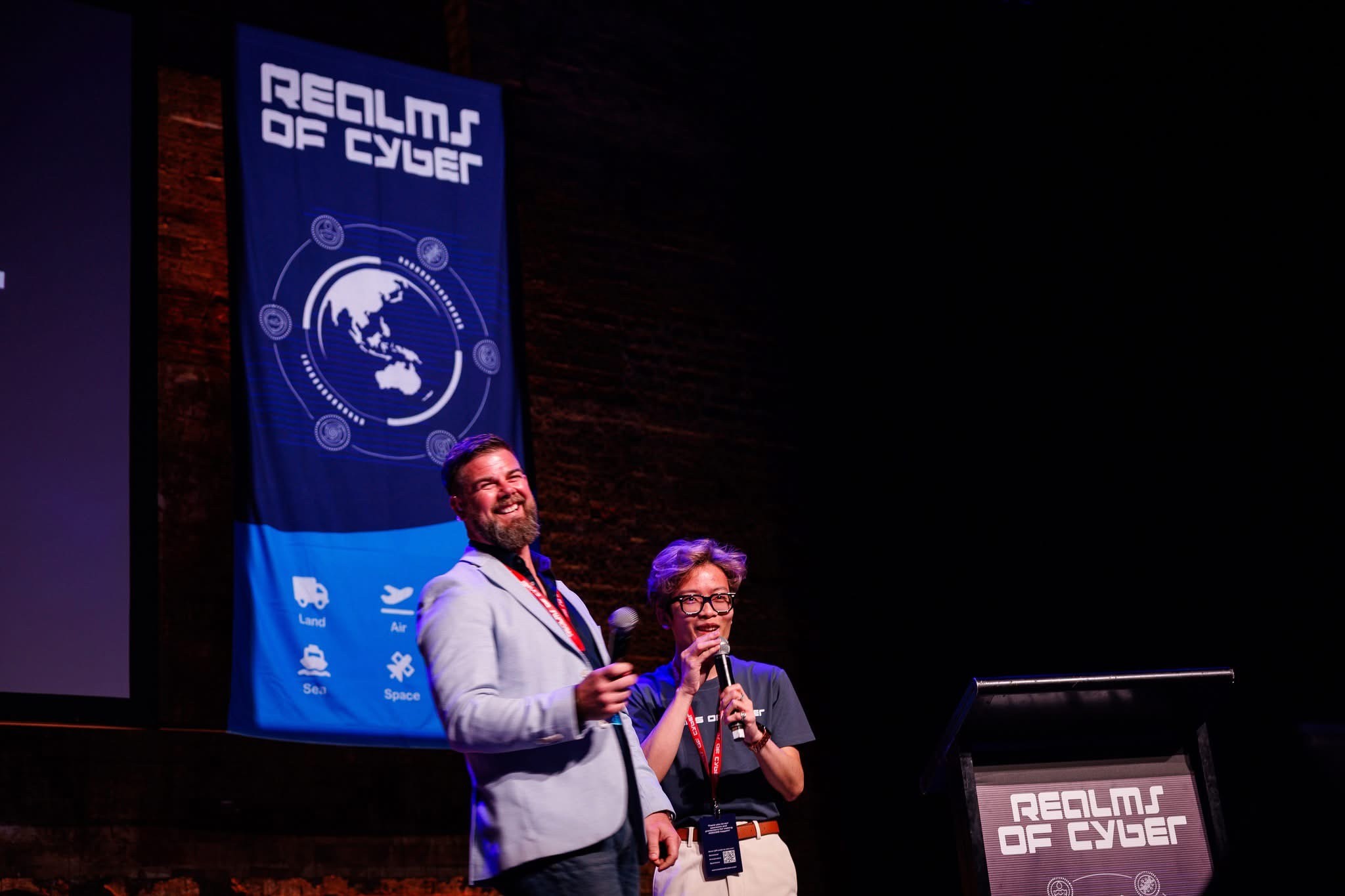 Commanding main stage at Realms of Cyber, 2024–2026. Orchestrates elite speaker lineups and energizes industry audiences.